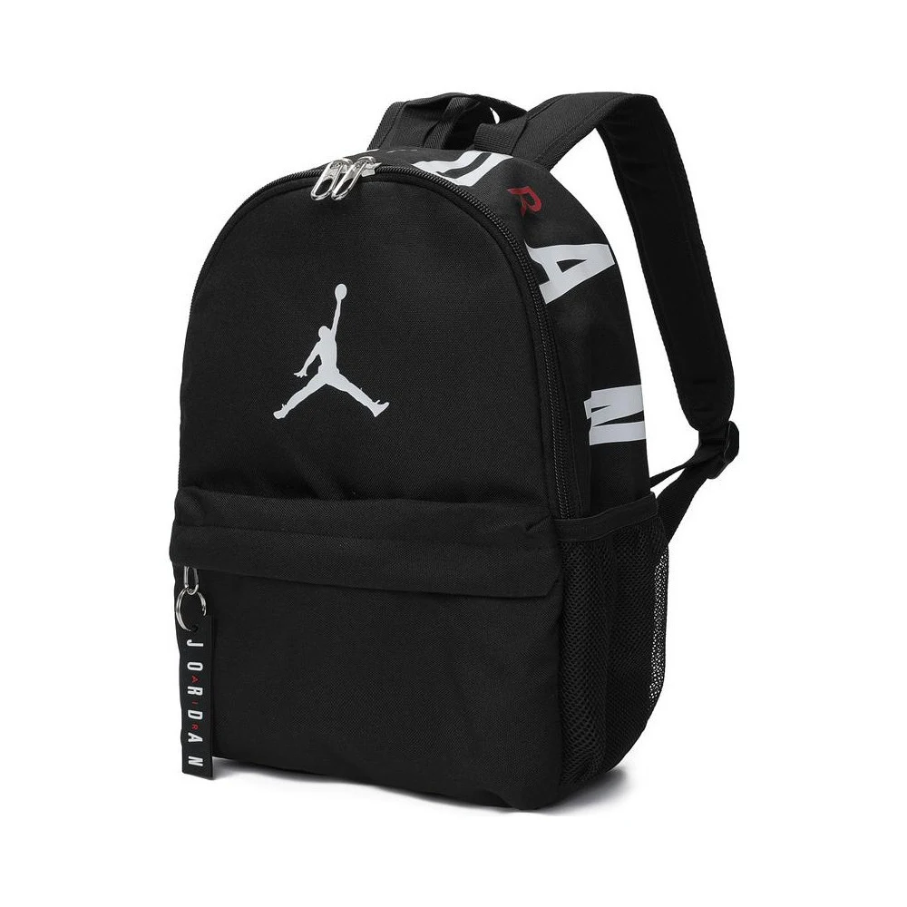 The Nike 2025 Children’s Backpack with model number JD2213008TD-001-023 is a toddler-sized backpack designed for young children. It features a playful black design adorned with animal, cartoon, and letter motifs, making it both functional and fun for kids. The backpack is constructed from durable polyester material, ensuring it can withstand the rigors of daily use.